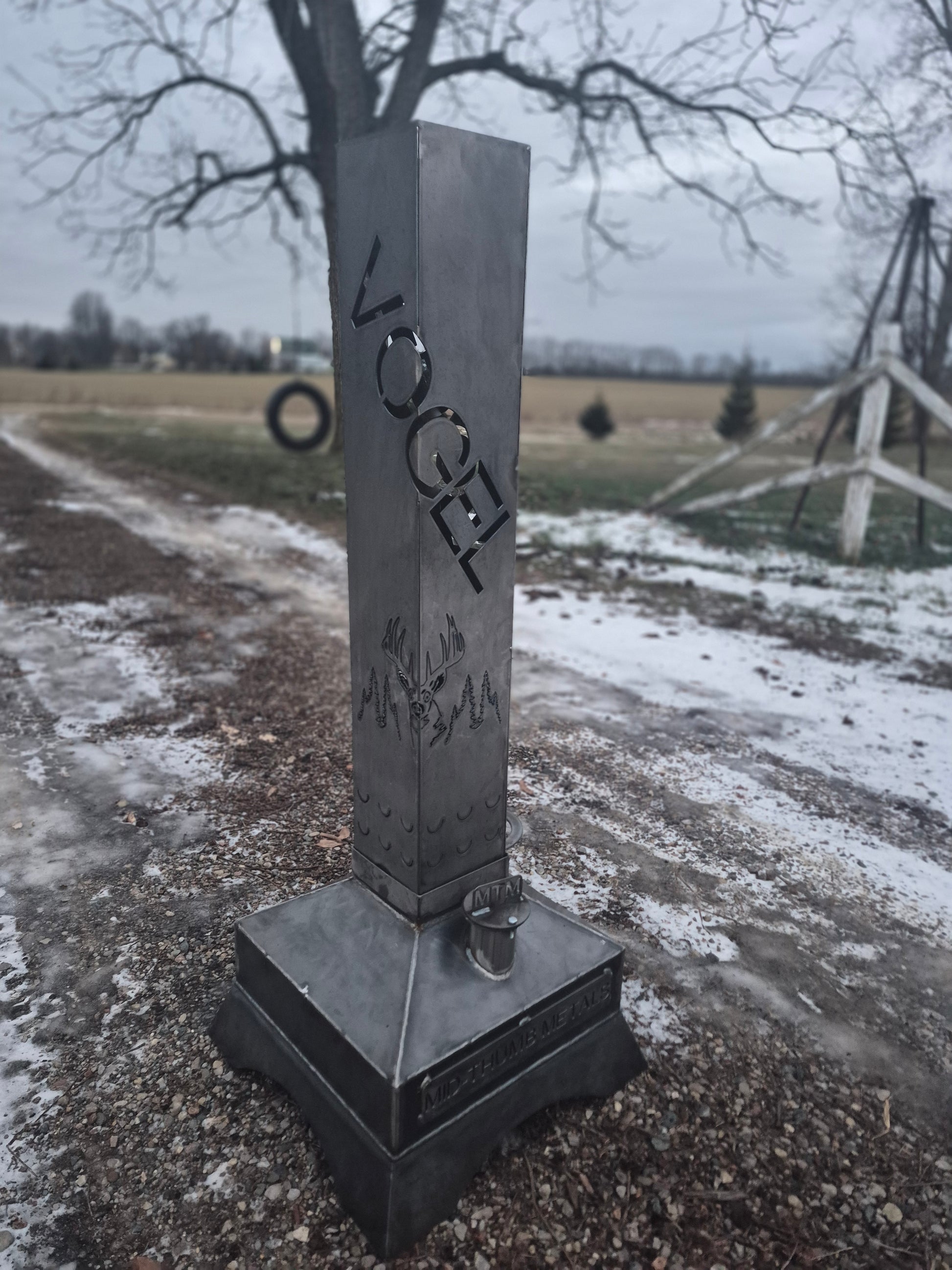 - Chimney is 36" tall & cut out of 14-gauge mild steel